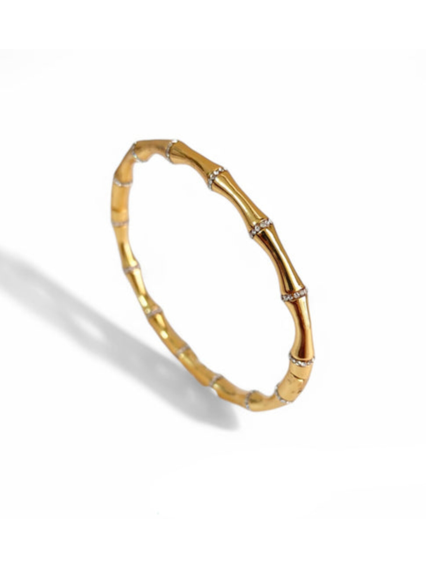 - Inspired by the natural form of bamboo, this sculpted gold bracelet features fluid segments with delicate sparkling accents.