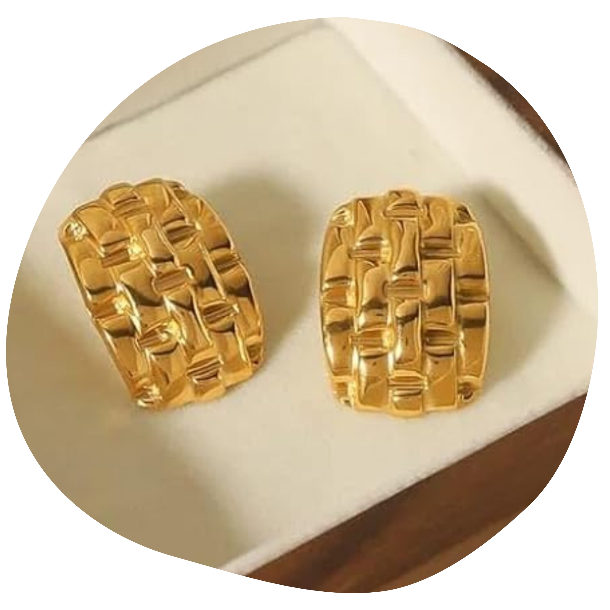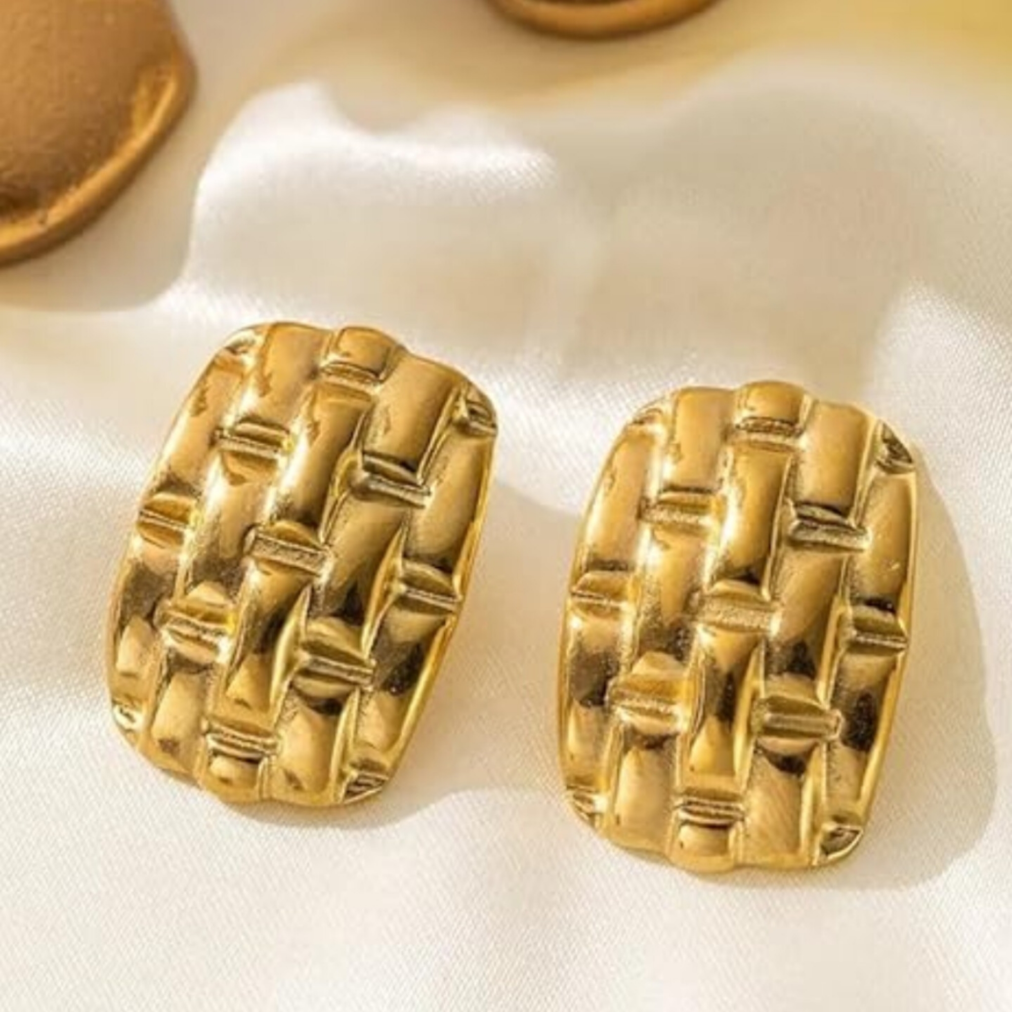 Earrings feature a unique basket weave texture, giving them a rich, dimensional look.