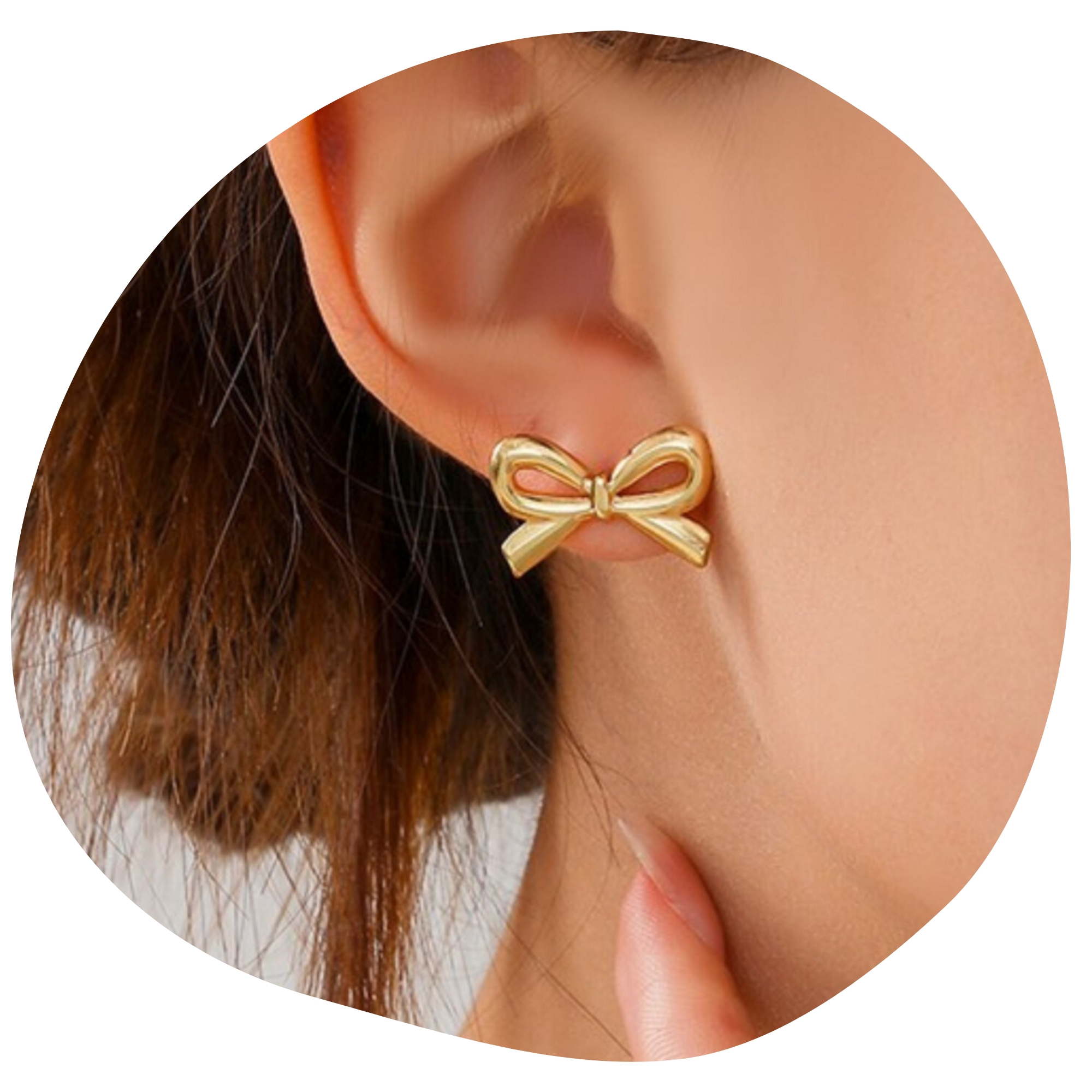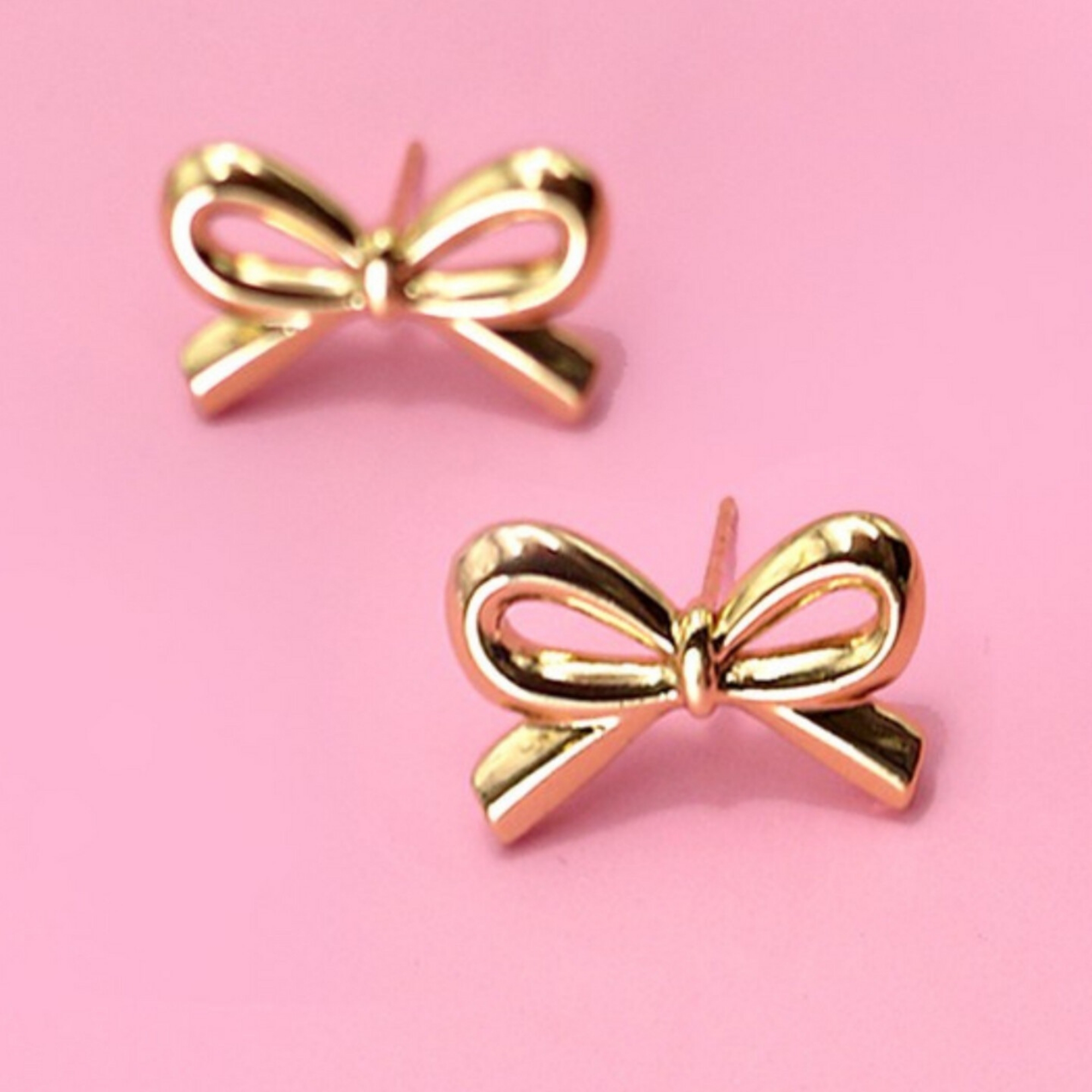 Add a touch of elegance to your look with these chic golden bow stud earrings.