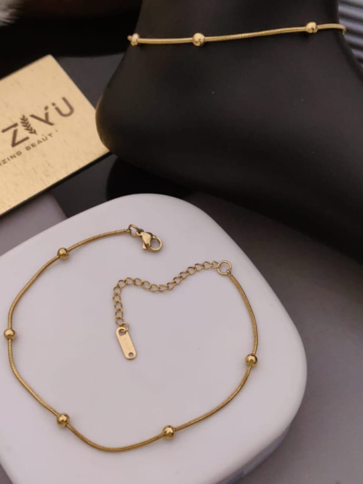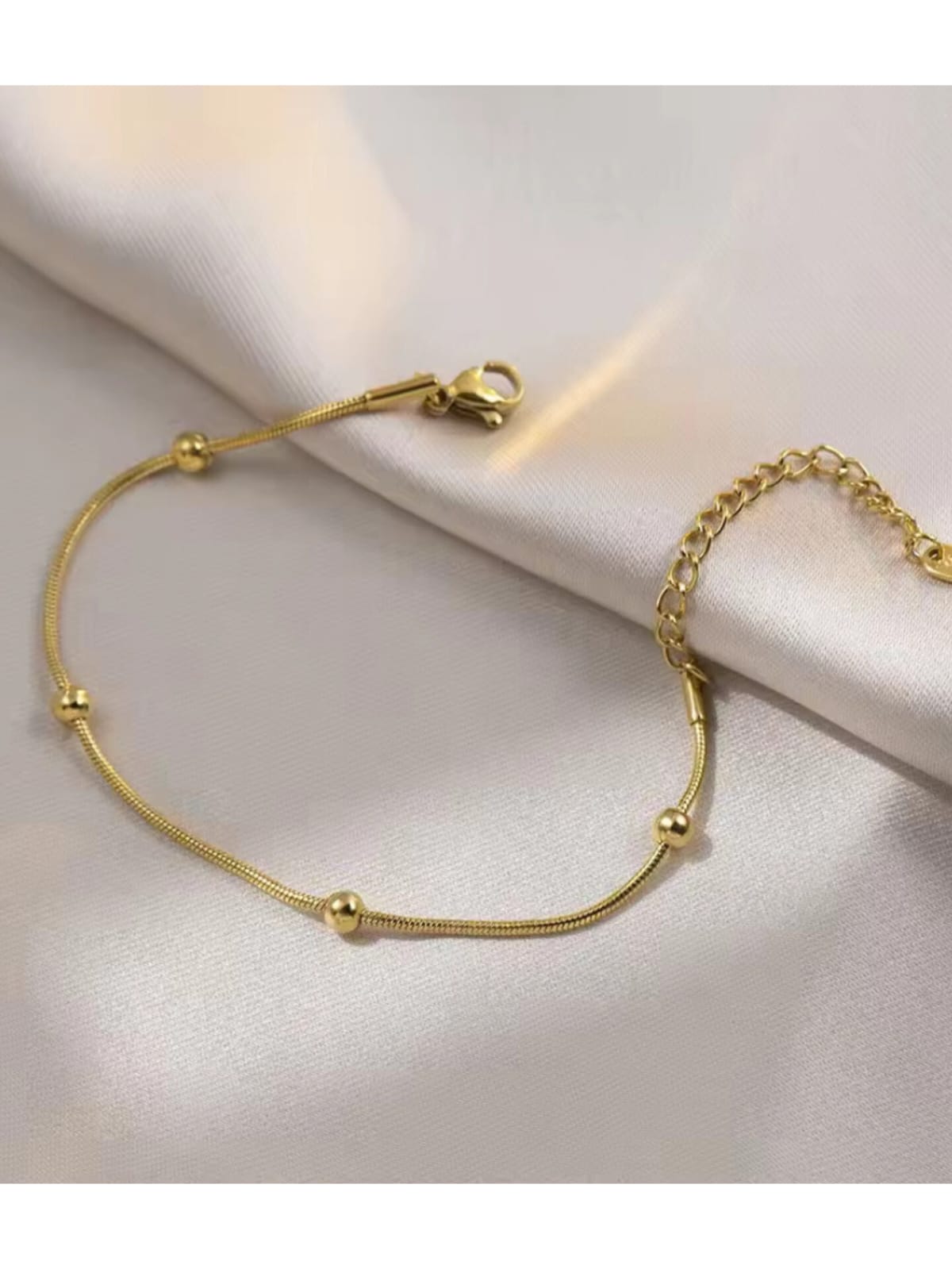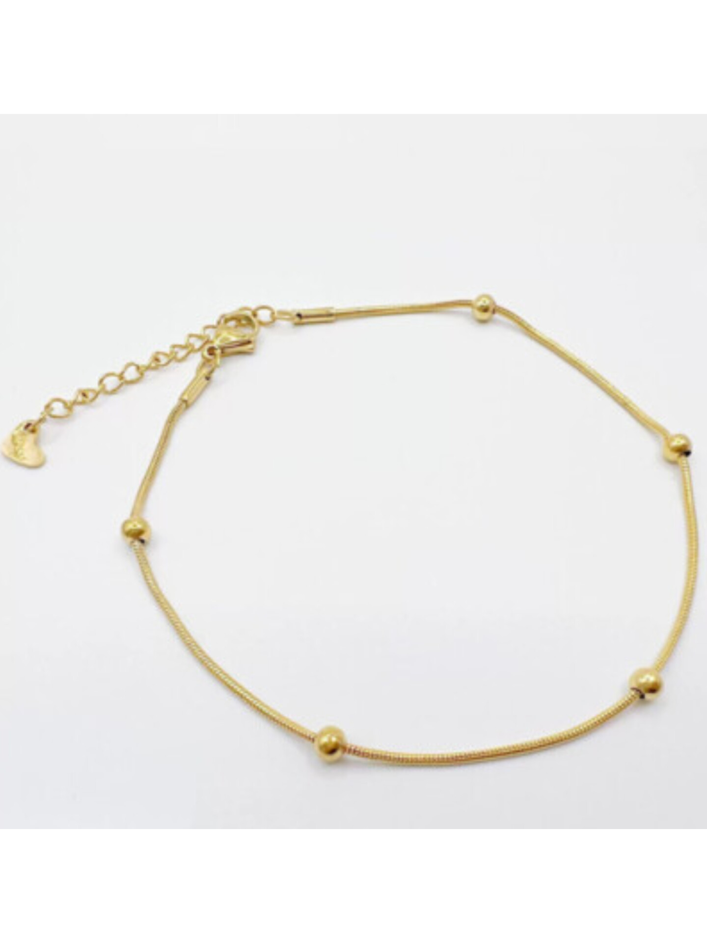 • A minimal gold-toned anklet featuring delicate round beads on a sleek chain.