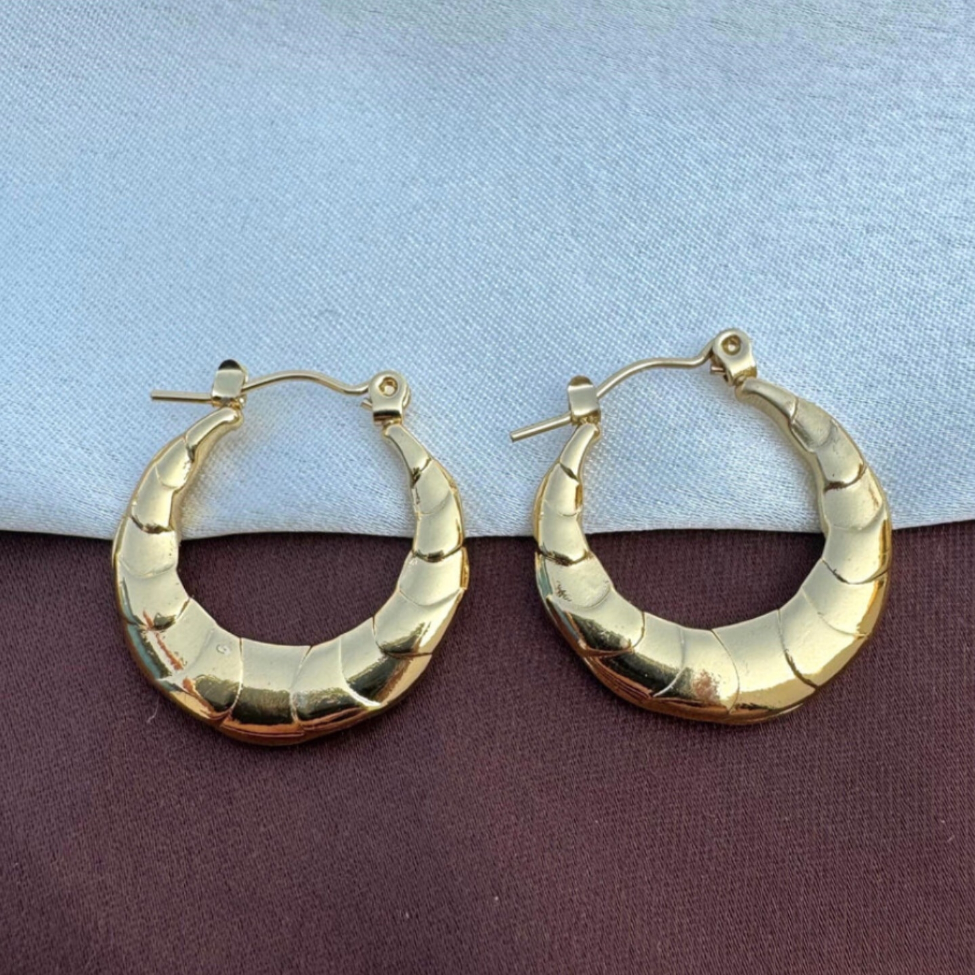 These chic Golden Crescent Hoop Earrings showcase a beautifully curved, segmented design that exudes modern elegance.