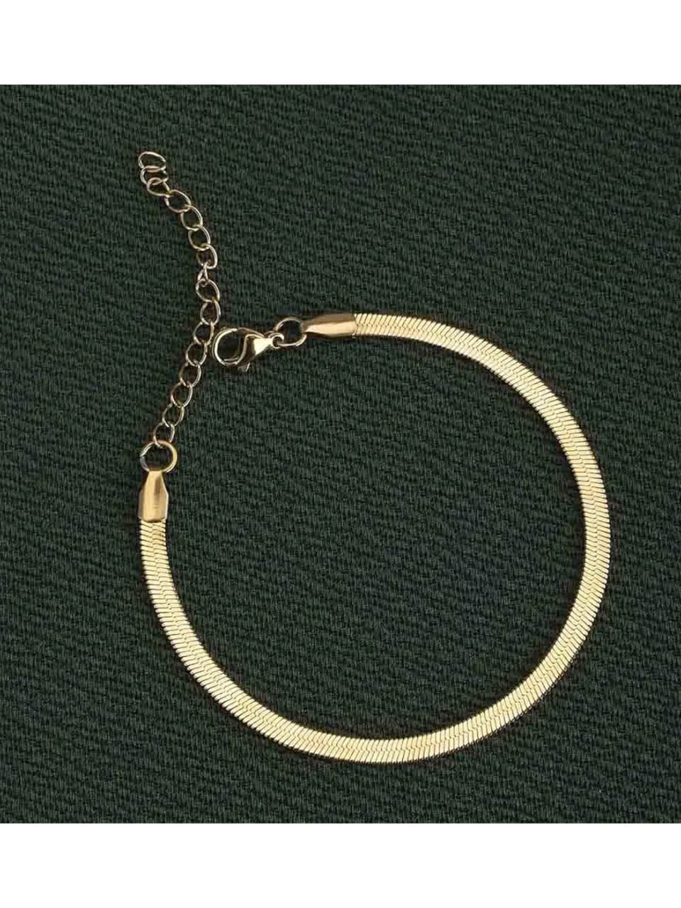 - This elegant bracelet features a fluid snake-chain design with a polished gold finish that radiates timeless charm.